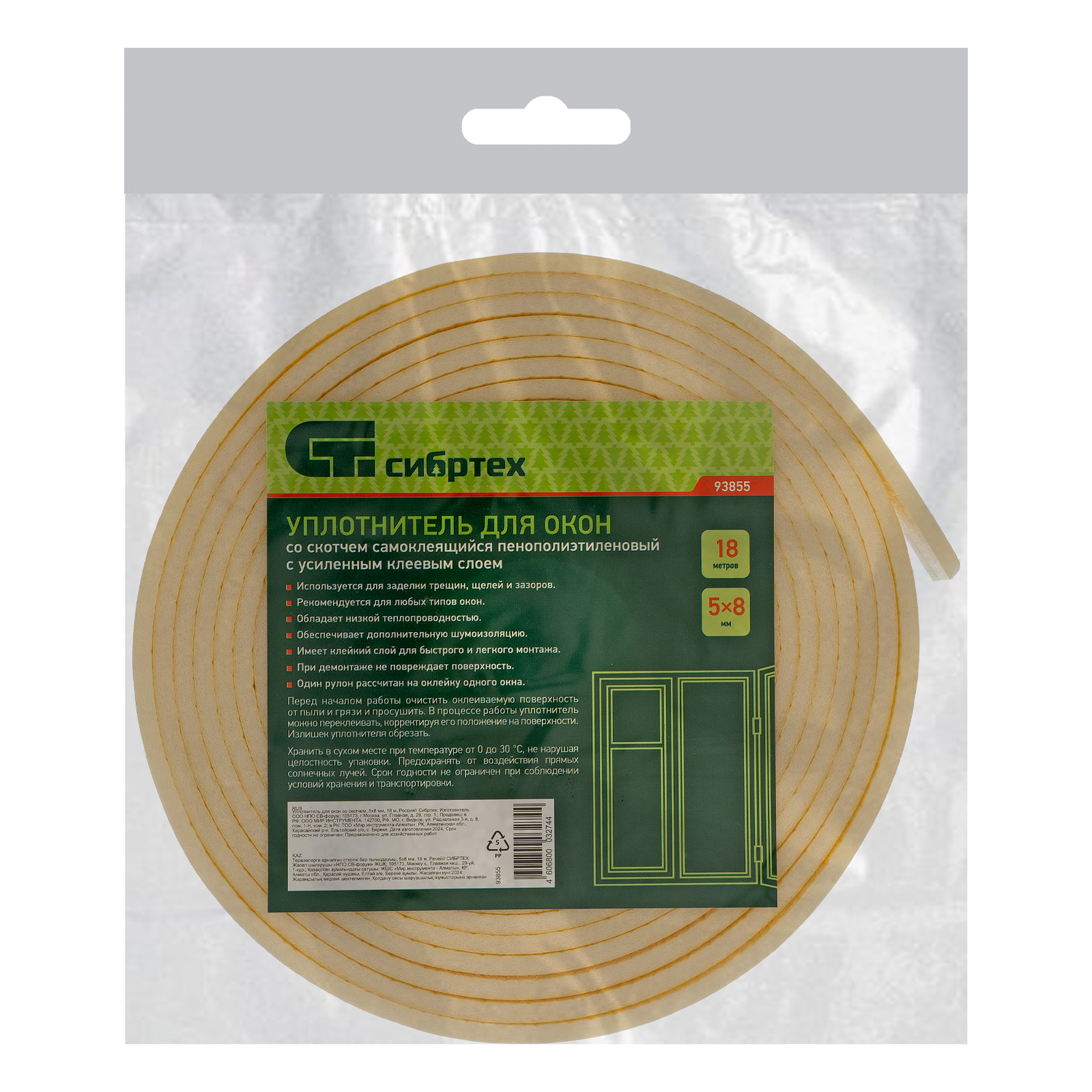 Уплотнитель для окон со скотчем, 5 х 8 мм, 18 м Россия Сибртех |