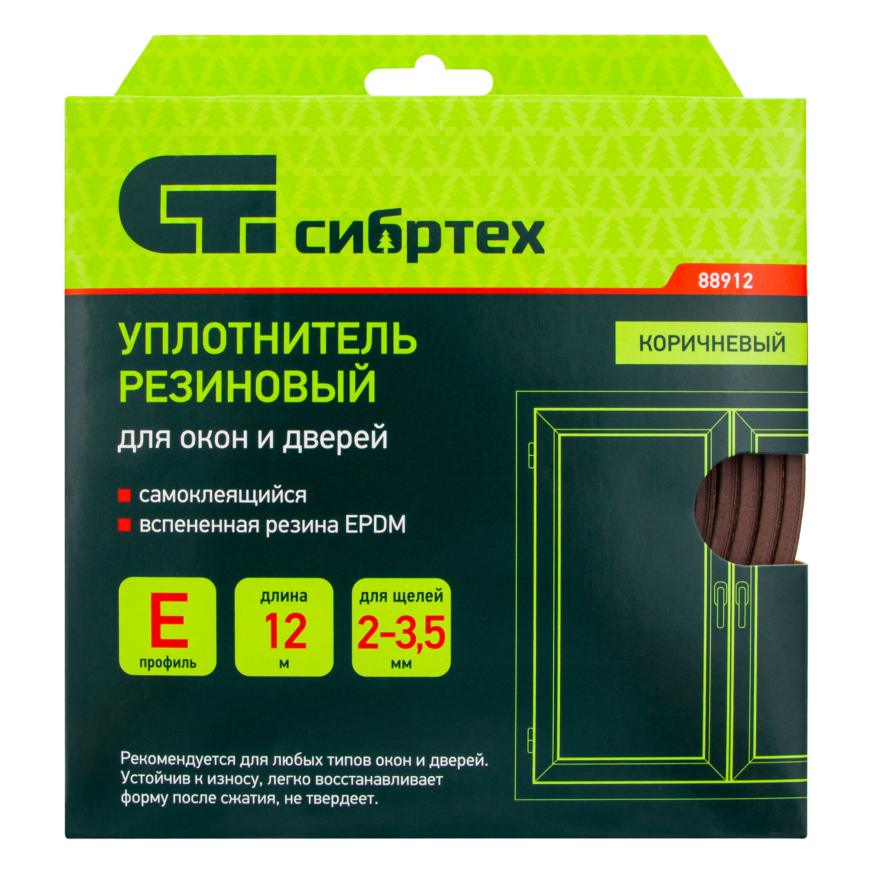 Коричневый резиновый уплотнитель Сибртех 88912 длиной 12 м, с профилем «E», предназначен для герметизации и уплотнения оконных и дверных блоков с целью предотвращения сквозняков и вибраций, защиты от влаги и пыли, создания эффективной тепло- и звукоизоляции. Клеевой слой обеспечивает высокую адгезию и надежную фиксацию. Использование уплотнителя позволяет значительно снизить энергетические и экономические затраты. Лента с E-профилем 9 х 4 мм подойдет для щелей размером 2-3,5 мм.