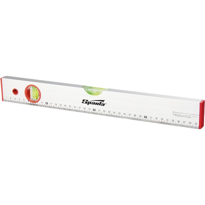 Алюминиевый уровень Sparta 35115 длиной 1500 мм, с 2 глазками и линейкой, рассчитан на применение в быту и в производственных условиях. Он поможет добиться точного выстраивания разметочных линий для последующей установки конструкций, полок, укладки облицовочных материалов и т.д. Две пузырьковые ампулы обеспечивают точный контроль отклонений поверхностей от горизонтальной и вертикальной плоскостей.,Для определения отклонения вертикали 90 градусов необходимо использовать пузырьковую ампулу только в верхнем положении уровня. Только базовая поверхность является рабочей (противоположная ампуле 180 градусов).