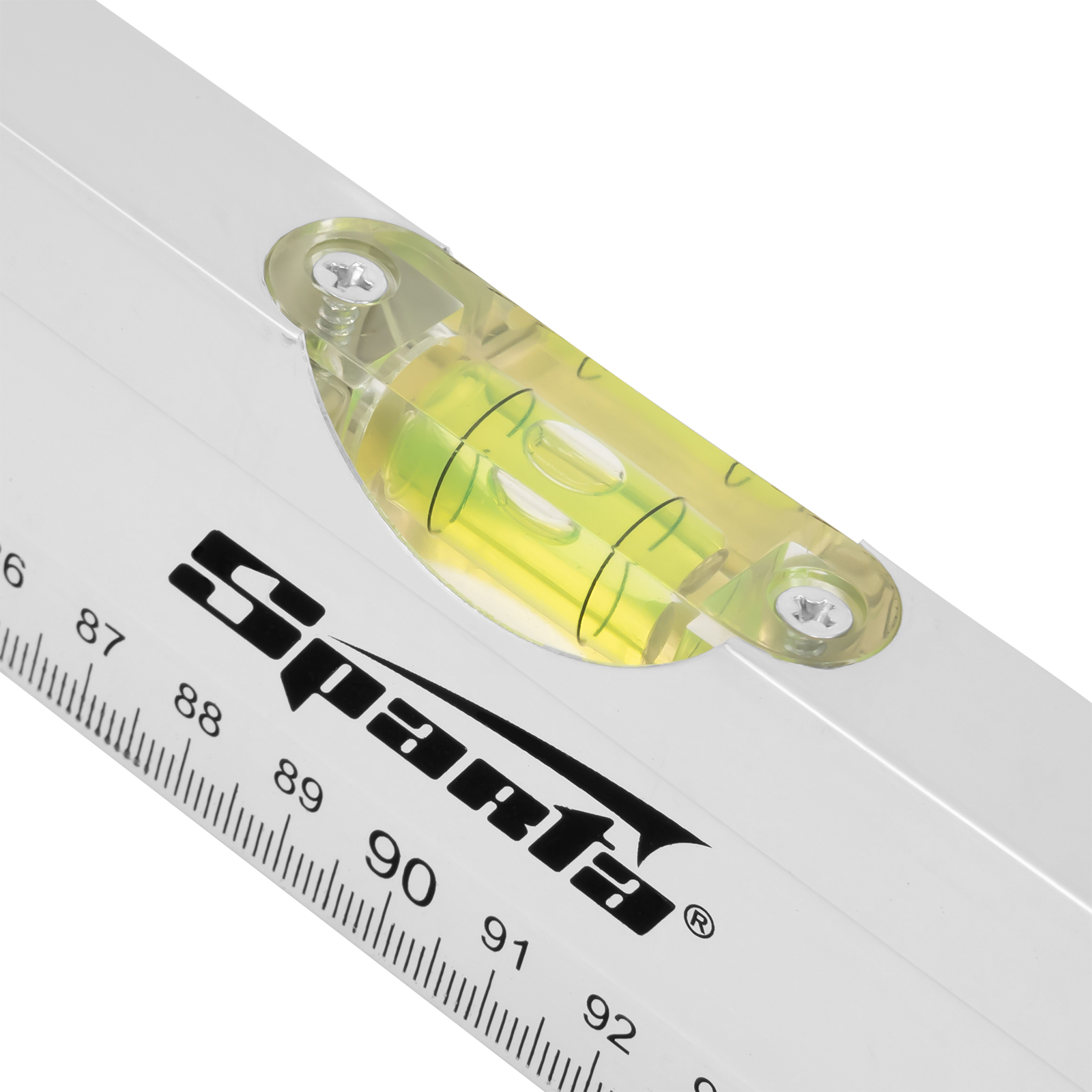Алюминиевый уровень Sparta 35118 длиной 1800 мм, с 2 глазками и линейкой, рассчитан на применение в быту и в производственных условиях. Он поможет добиться точного выстраивания разметочных линий для последующей установки конструкций, полок, укладки облицовочных материалов и т.д. Две пузырьковые ампулы обеспечивают точный контроль отклонений поверхностей от горизонтальной и вертикальной плоскостей.,Для определения отклонения вертикали 90 градусов необходимо использовать пузырьковую ампулу только в верхнем положении уровня. Только базовая поверхность является рабочей (противоположная ампуле 180 градусов).
