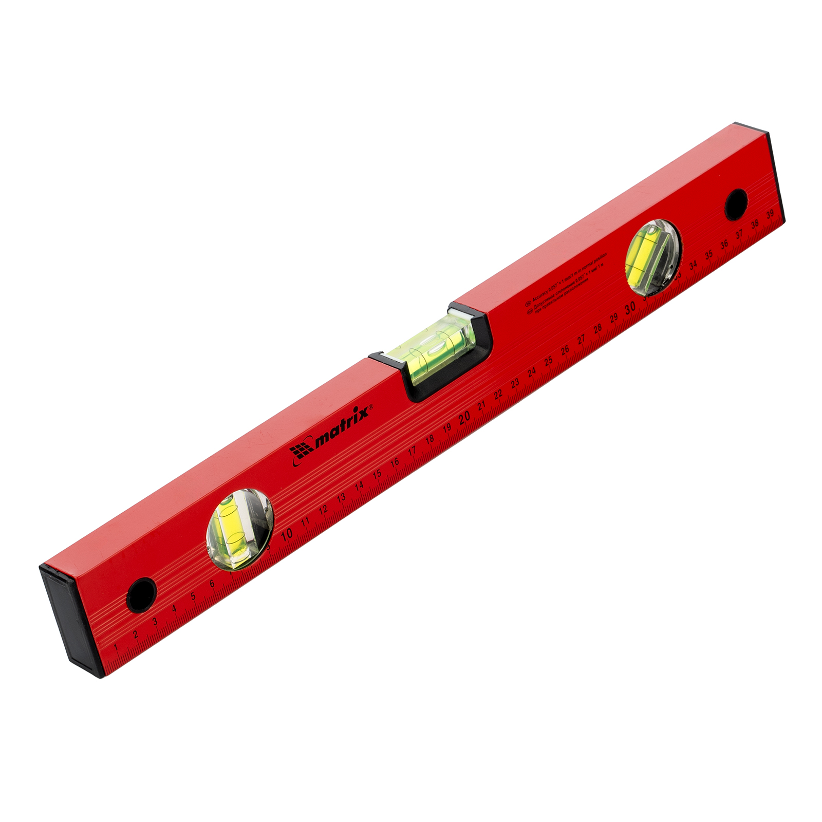 Уровень алюминиевый, 400 мм, 3 глазка, красный, линейка Matrix