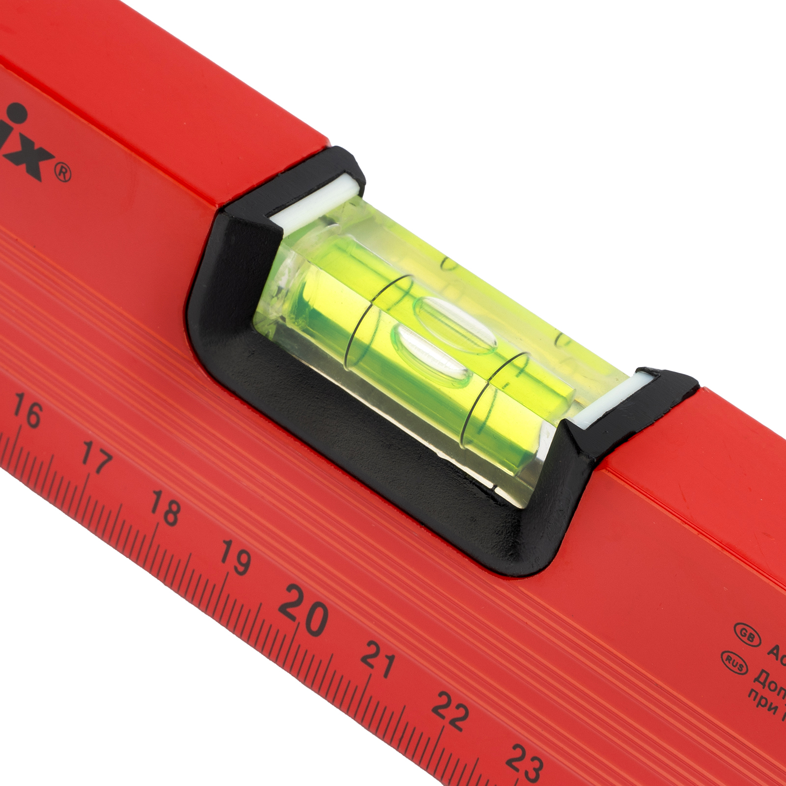 - Мерная шкала на корпусе уровня позволяет использовать его в качестве линейки.