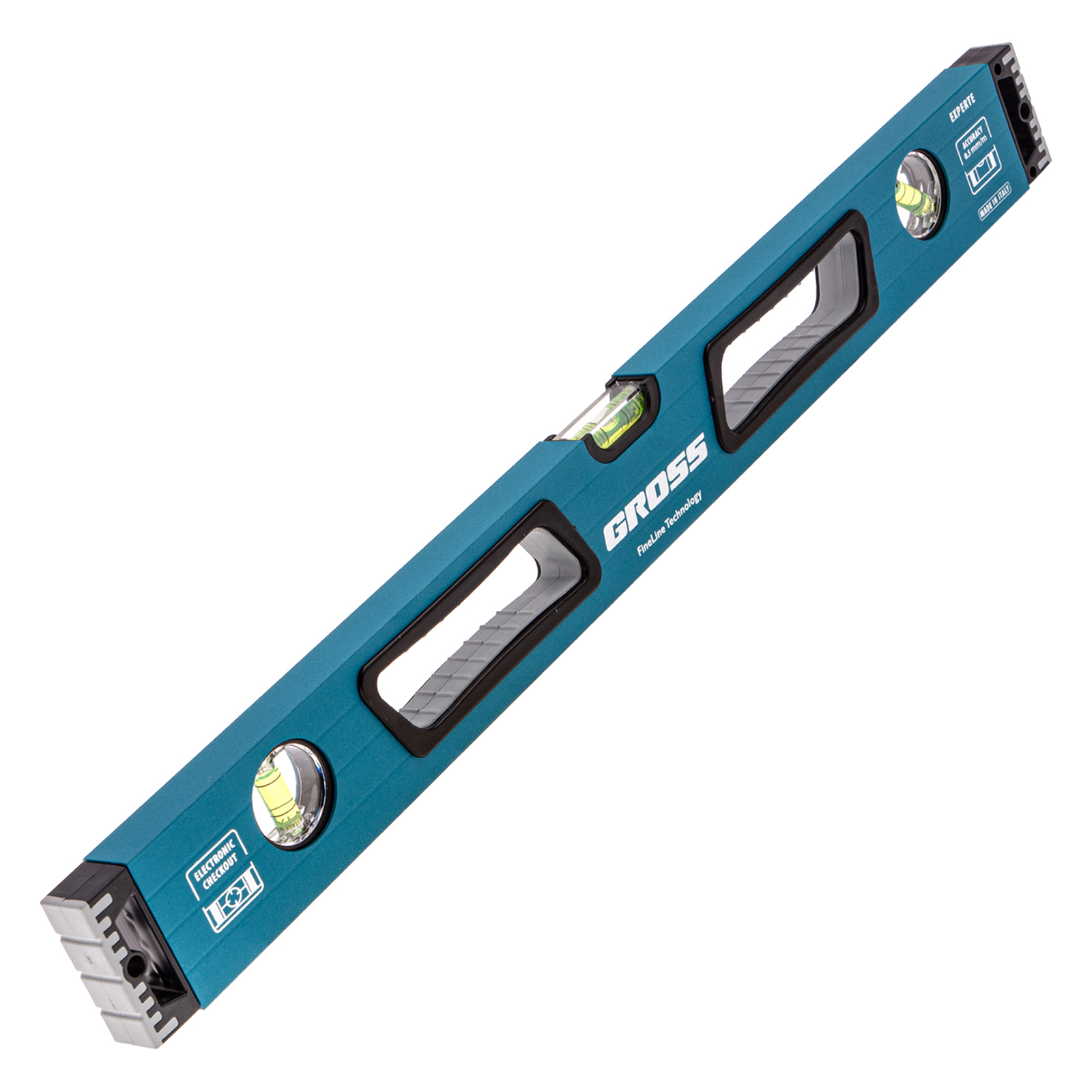 Уровень алюминиевый, 600 мм, усиленный с ударопрочными заглушками, рукоятки, 3 глазка Gross |