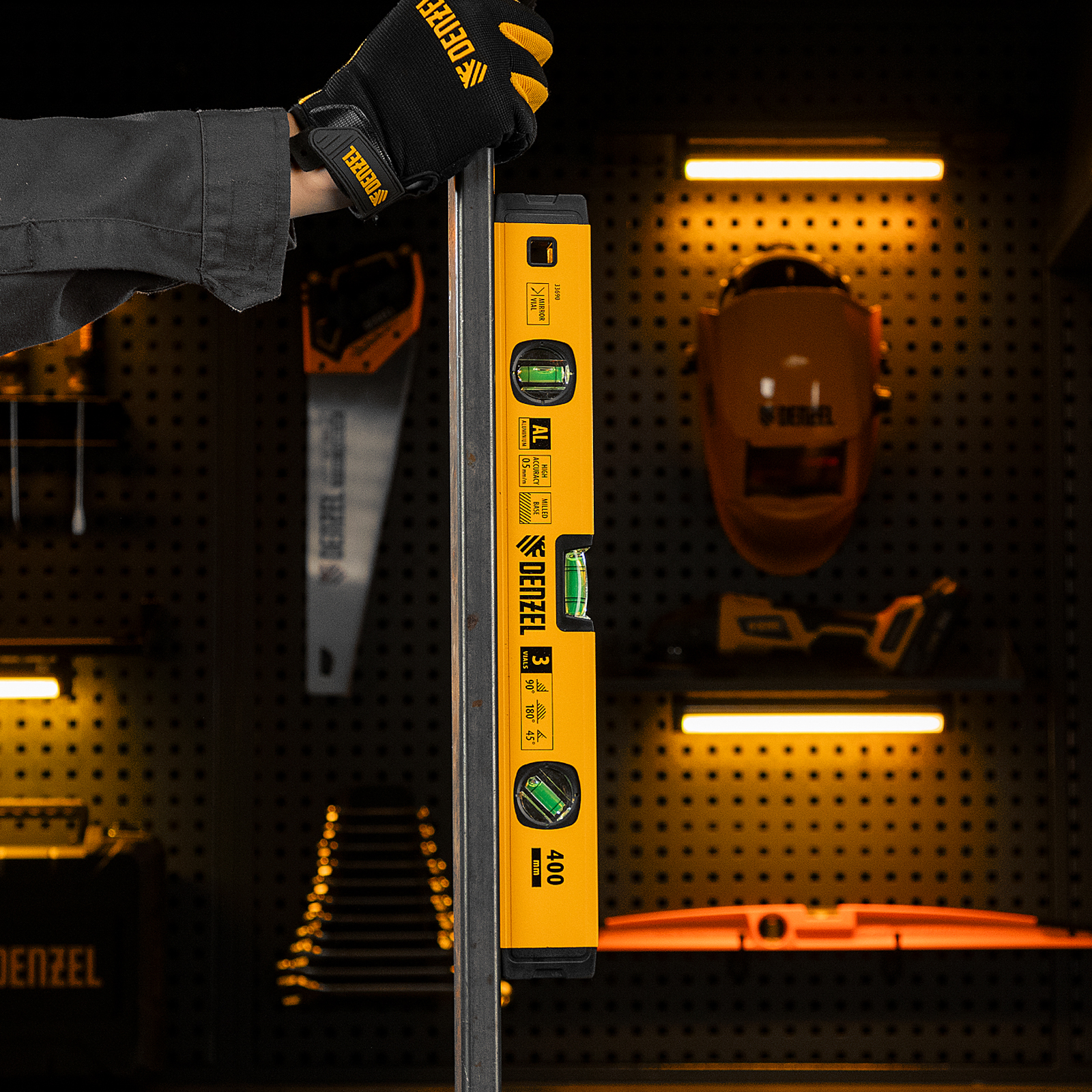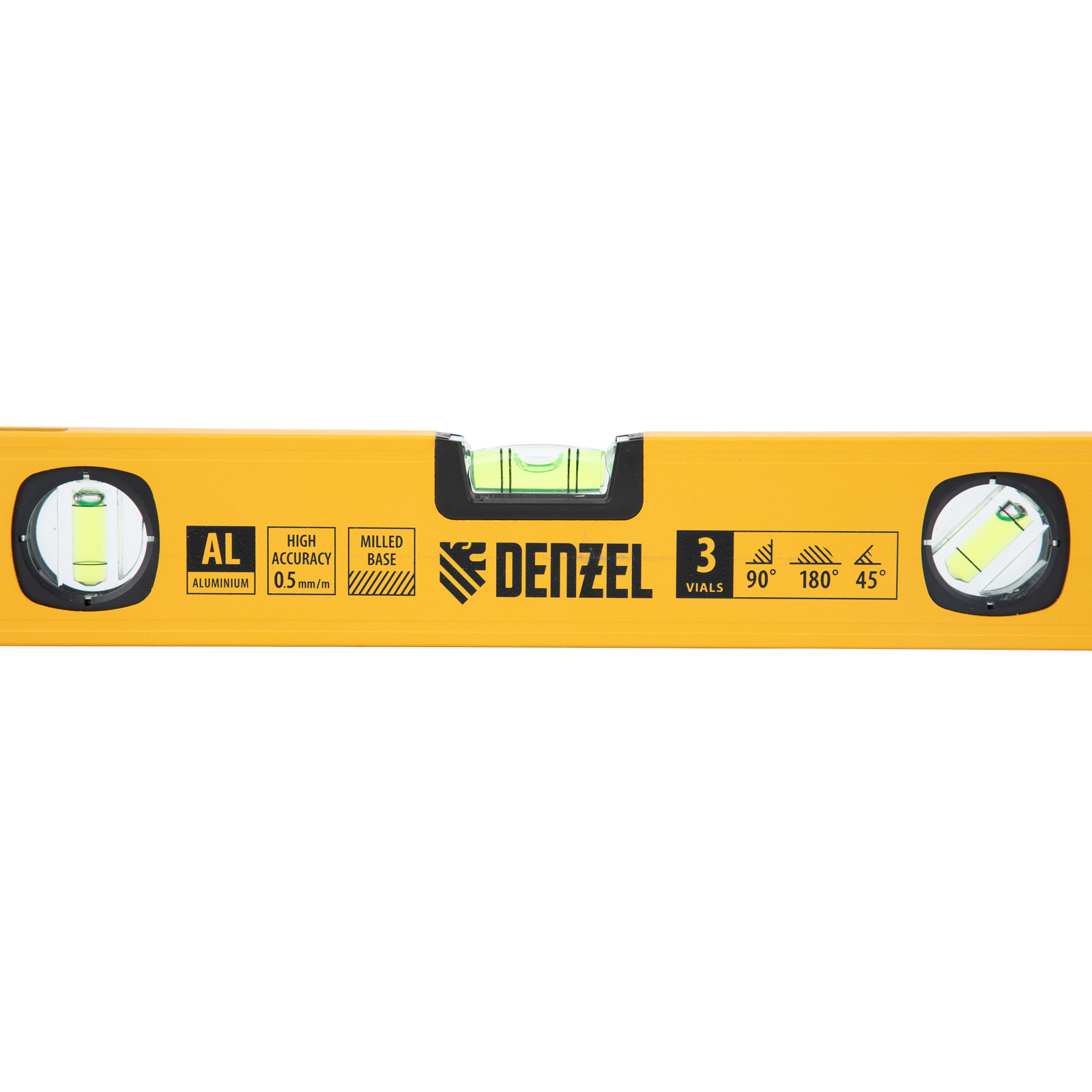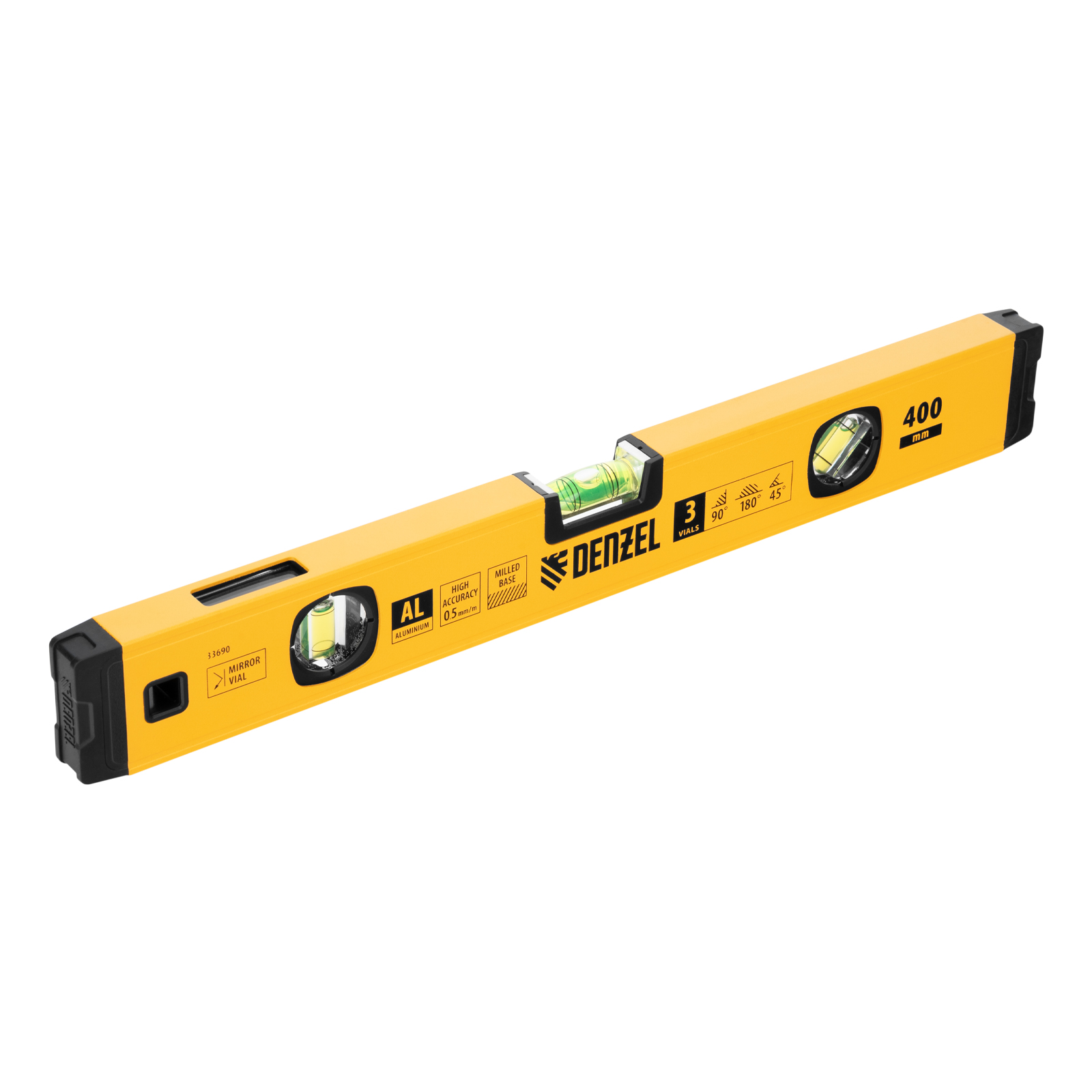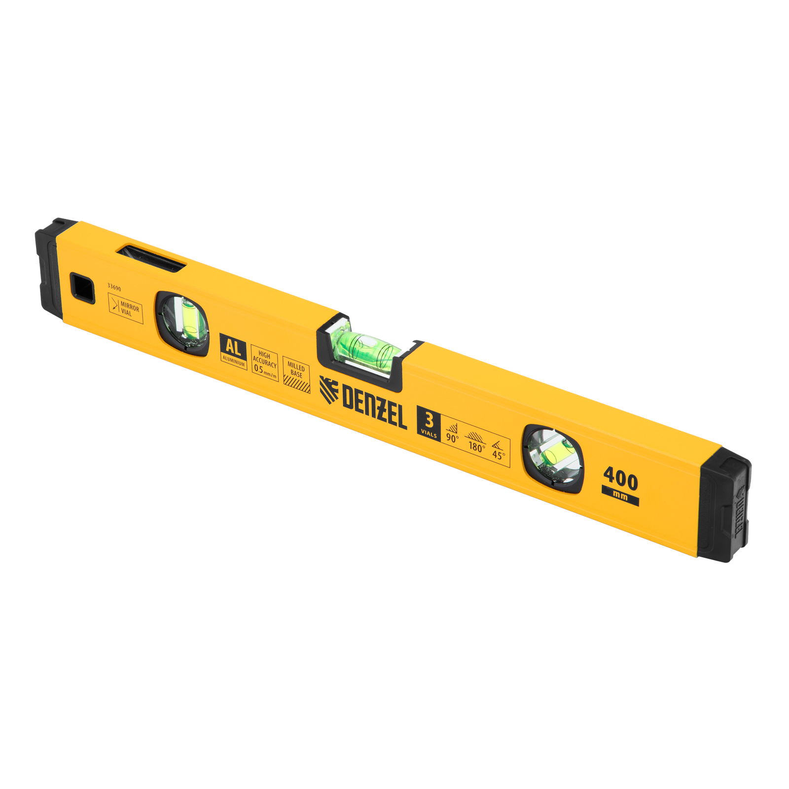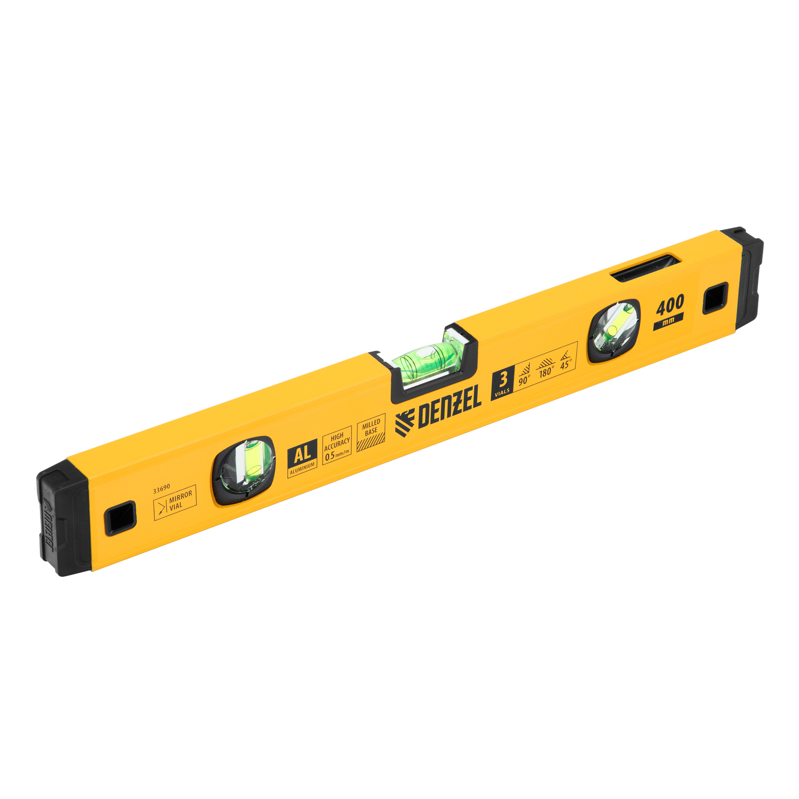 Уровень алюминиевый, магнит., фрезерованный, 3 глазка (1 зеркал.) 0,5 мм/м, 400 мм Denzel
