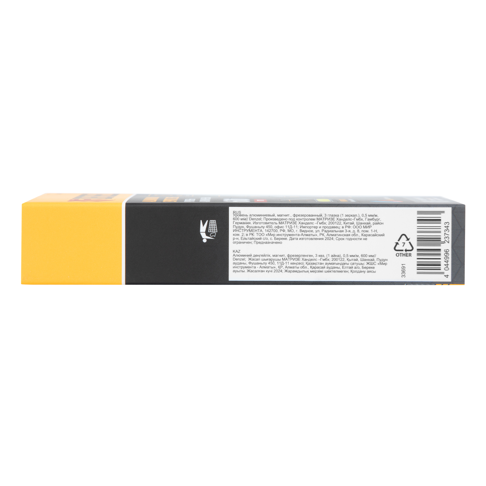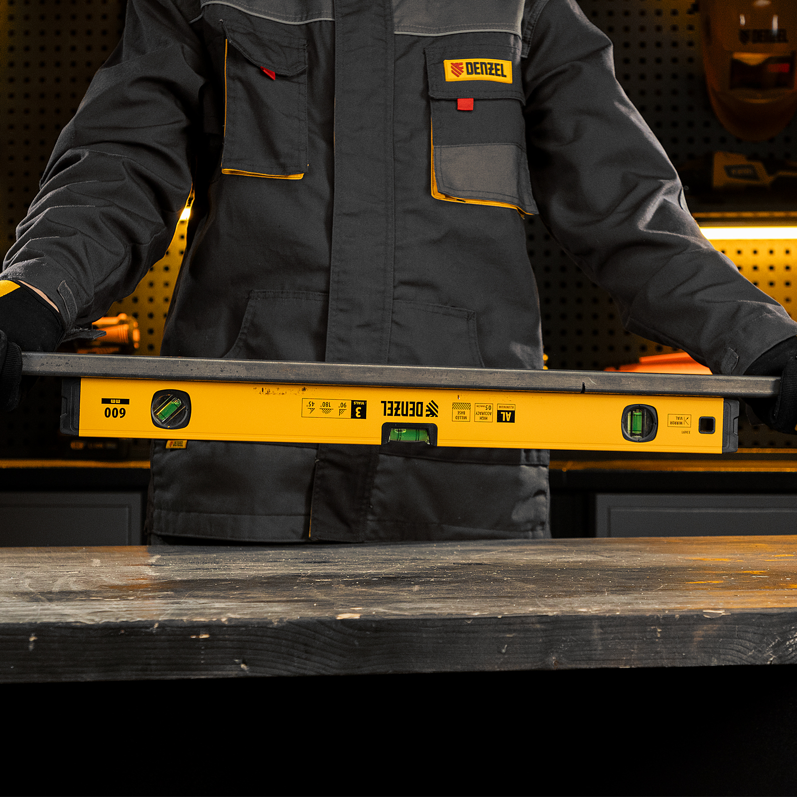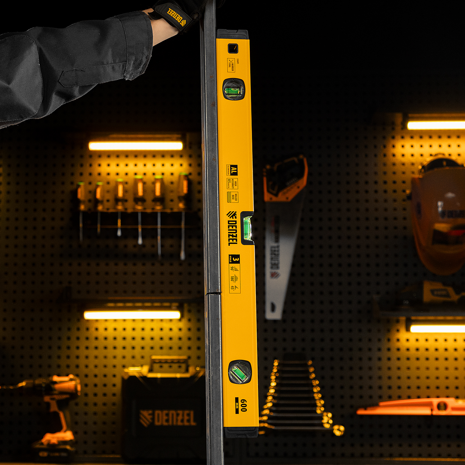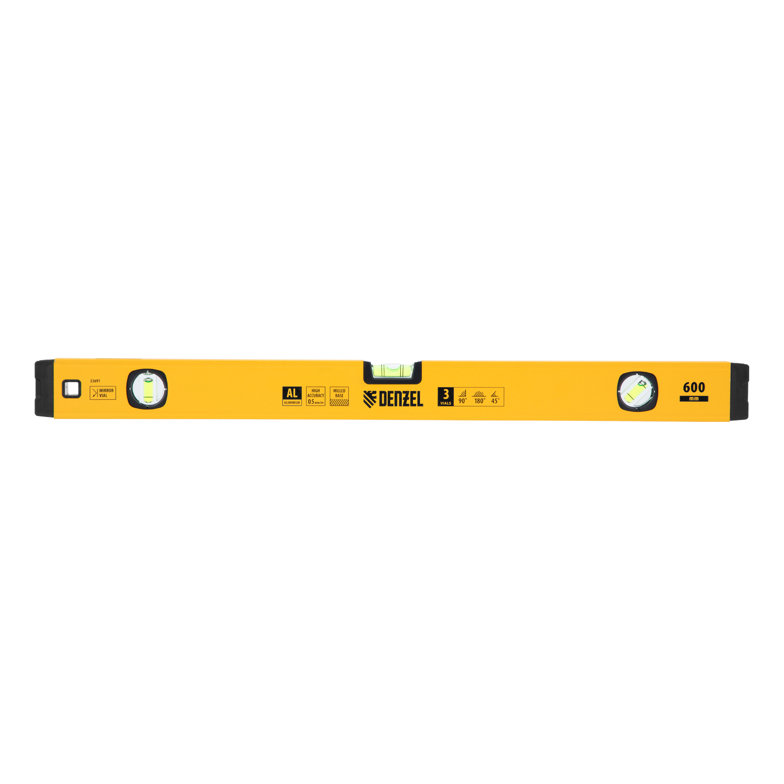 Уровень алюминиевый, магнит, фрезерованный, 3 глазка (1 зеркал.) 0,5 мм/м, 600 мм Denzel