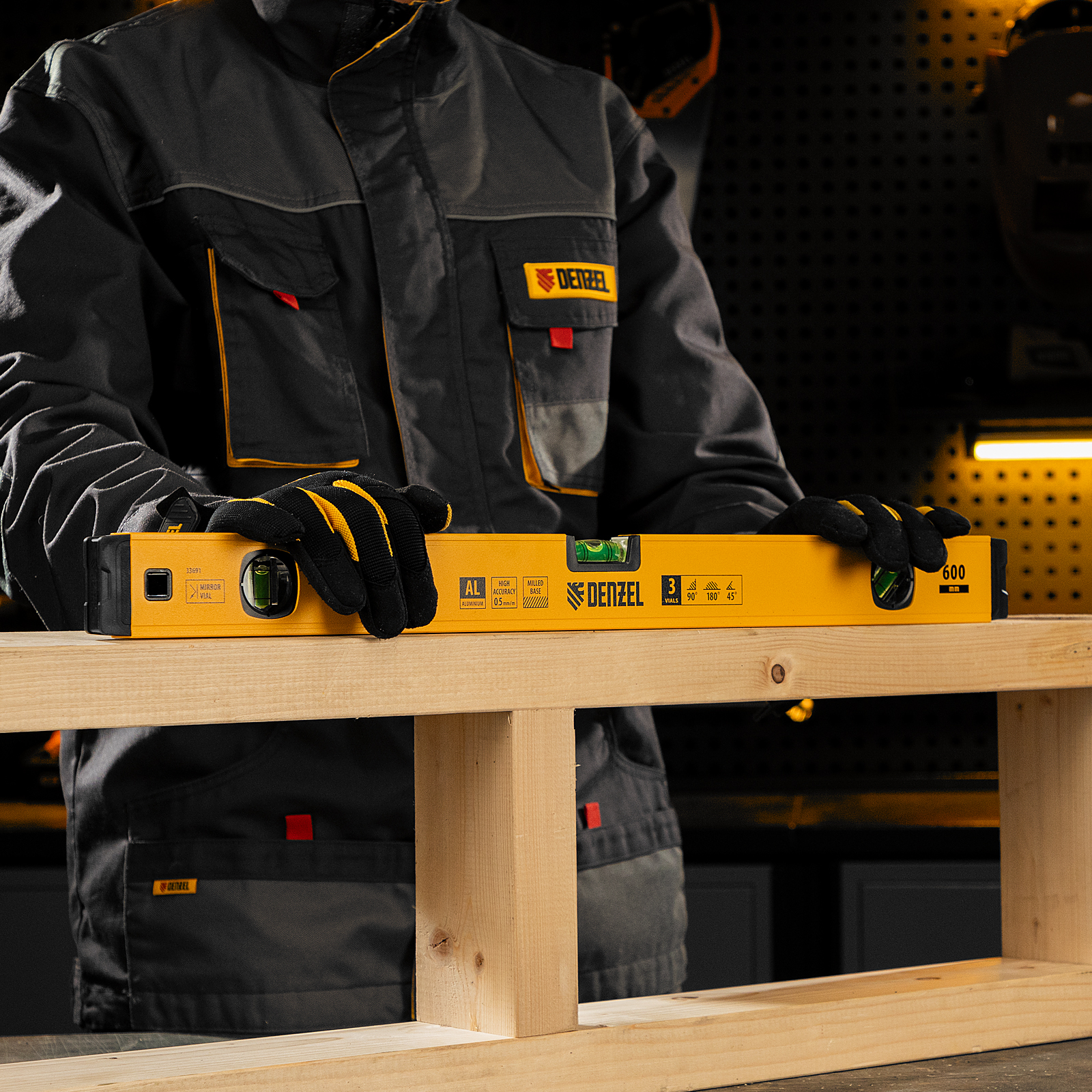 Алюминиевый фрезерованный уровень Denzel 33691 длиной 600 мм, с магнитом и 3 глазками, из которых 1 зеркальный, предназначен для контроля отклонений от горизонтальной, вертикальной и поверхности под углом 45° с точностью 0,5 мм/м. 3 пузырьковые камеры 90°, 180° и 45° позволяют быстро проверить правильность разметки. Инструмент незаменим при проведении строительных, ремонтных, сантехнических работ.