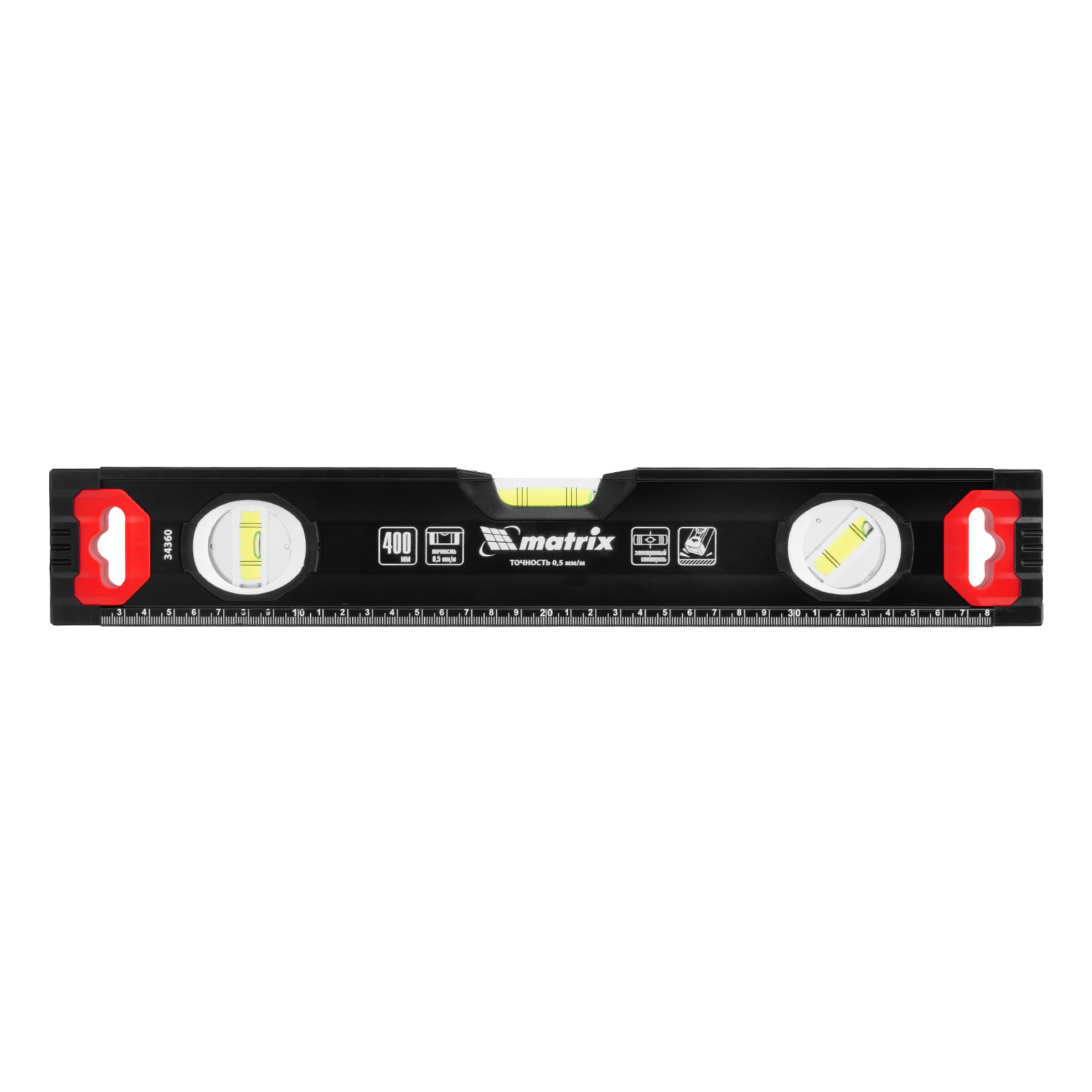Уровень алюминиевый, усиленный, фрезерованный, 3 глазка, 400 мм Matrix