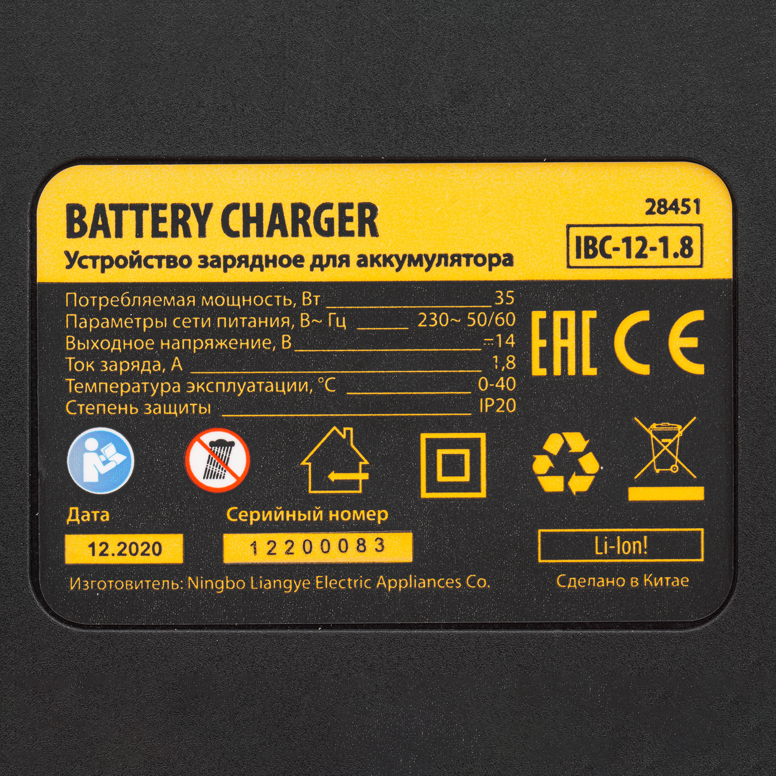 Устройство зарядное для аккумуляторов IBC-12-1.8, Li-Ion, 12 В, 1.8 А Denzel в Москве