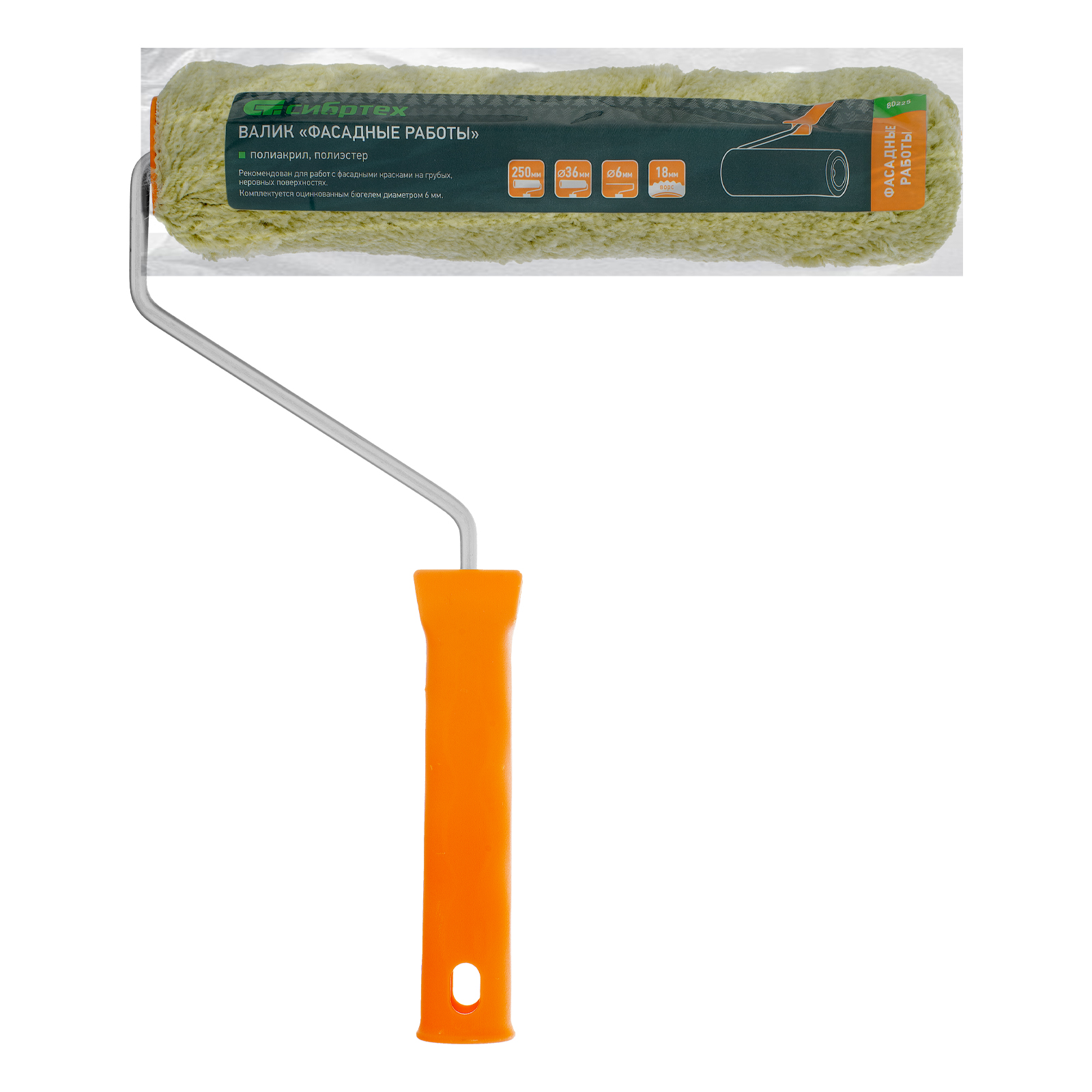 Валик "Фасадные работы", 250 мм, ворс 18 мм, D 36 мм, D ручки - 6 мм, полиакрил, полиэстер Сибртех