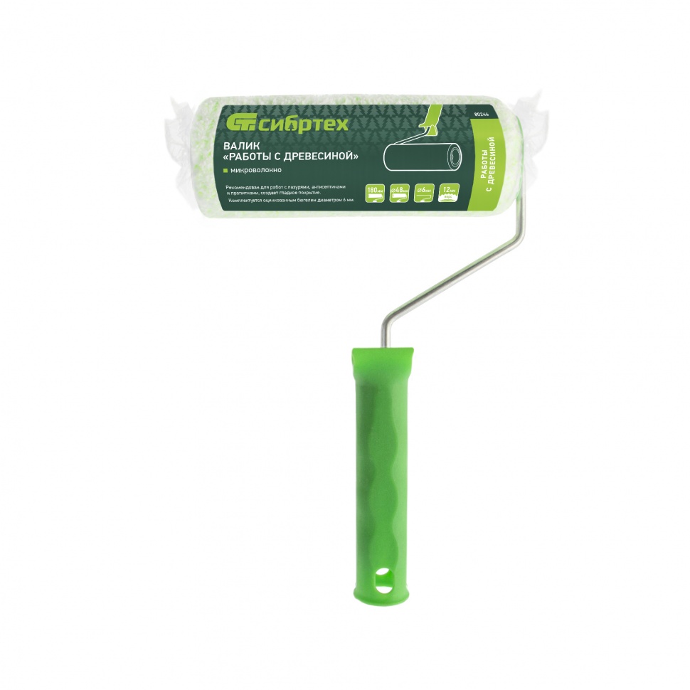 Валик Сибртех «Работы с древесиной» 80246 шириной 180 мм, ворсом 12 мм из микроволокна, диаметром ролика 48 мм и ручкой 6 мм, оптимален для работ с жидкими лакокрасочными материалами: антисептиками, грунтовками, пропитками, защитными составами, лазурью и другими невязкими ЛКМ. Шубка из микроволокна отличается высокой впитывающей способностью и обеспечивает ровное нанесение материалов на древесину любой текстуры.