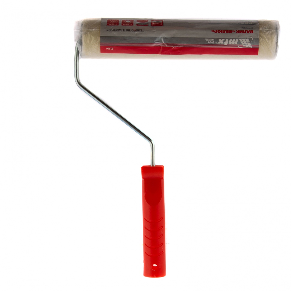Валик MTX PRO «ВЕЛЮР» 81346 шириной 250 мм, с ворсом 4 мм из шерсти 50% и полиакрила 50%, диаметром ролика 40 мм и ручкой 6 мм, используется для выполнения финишной отделки. Благодаря короткому ворсу лакокрасочный состав распределяется тонким слоем. Валик оптимален для работы с алкидными и эпоксидными лаками, но подходит также для нанесения тонким слоем других материалов, например, защитных составов на основе растворителей.