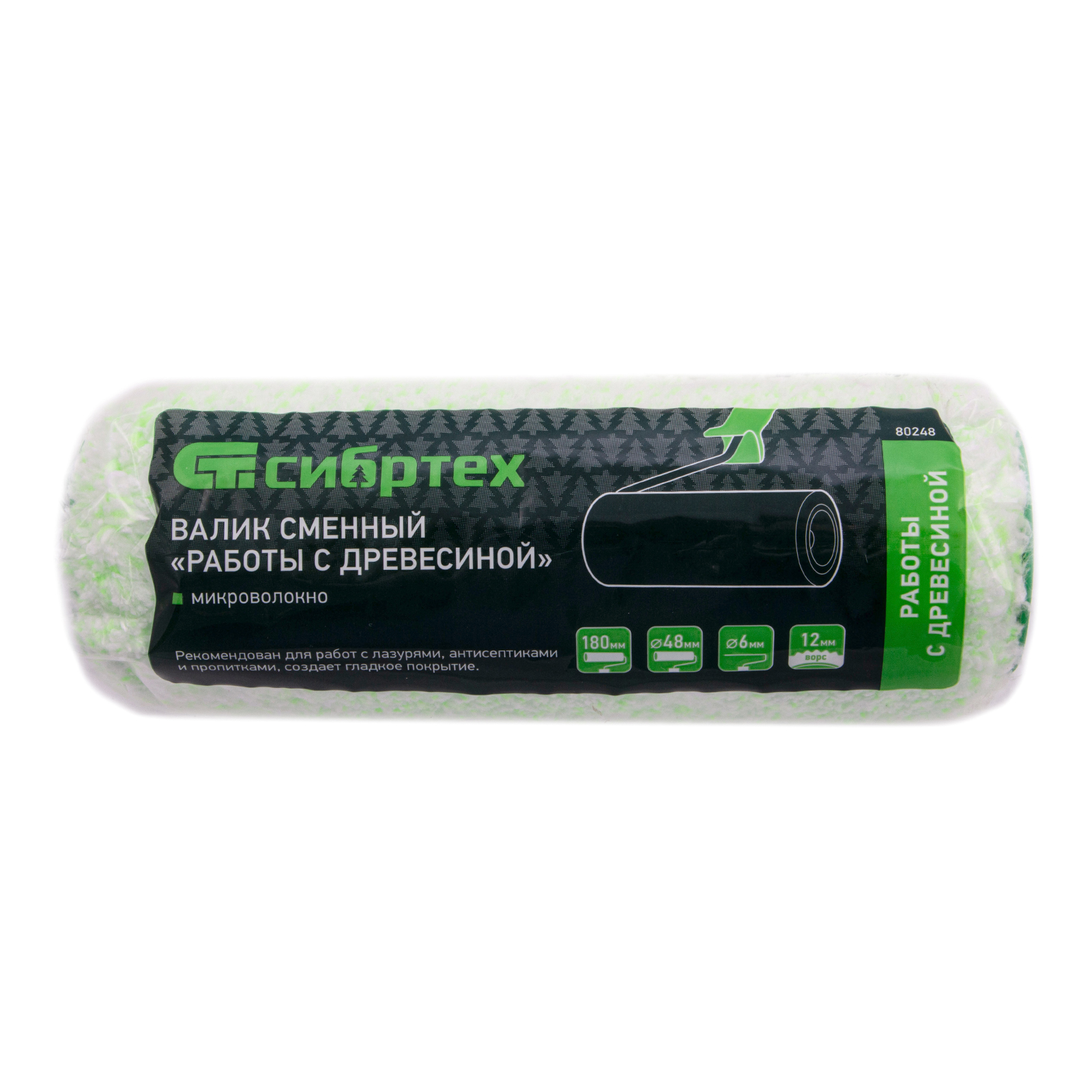 Валик сменный "Работы с древесиной", 180 мм, ворс 12 мм, D 48 мм, D ручки 6 мм,микроволокно Сибртех