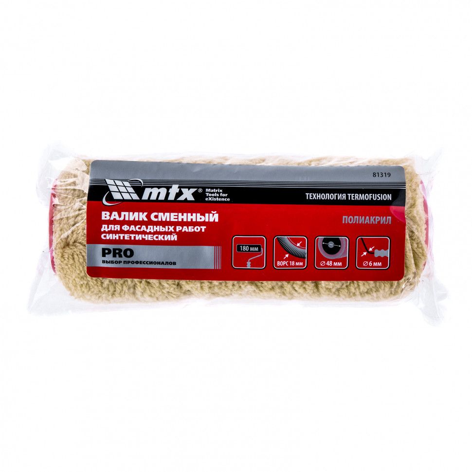 Валик сменный для фасадных работ синтетический Pro, 180 мм, ворс 18 мм, D 48 мм, D ручки 6 мм, полиакрил MTX