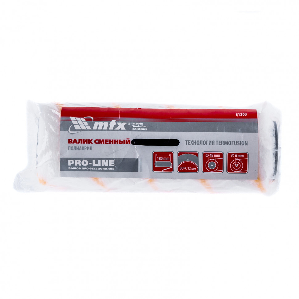 Валик сменный для внутренних работ синтетический Pro, 180 мм, ворс 12 мм, D 48 мм, D ручки 6 мм, полиакрил MTX