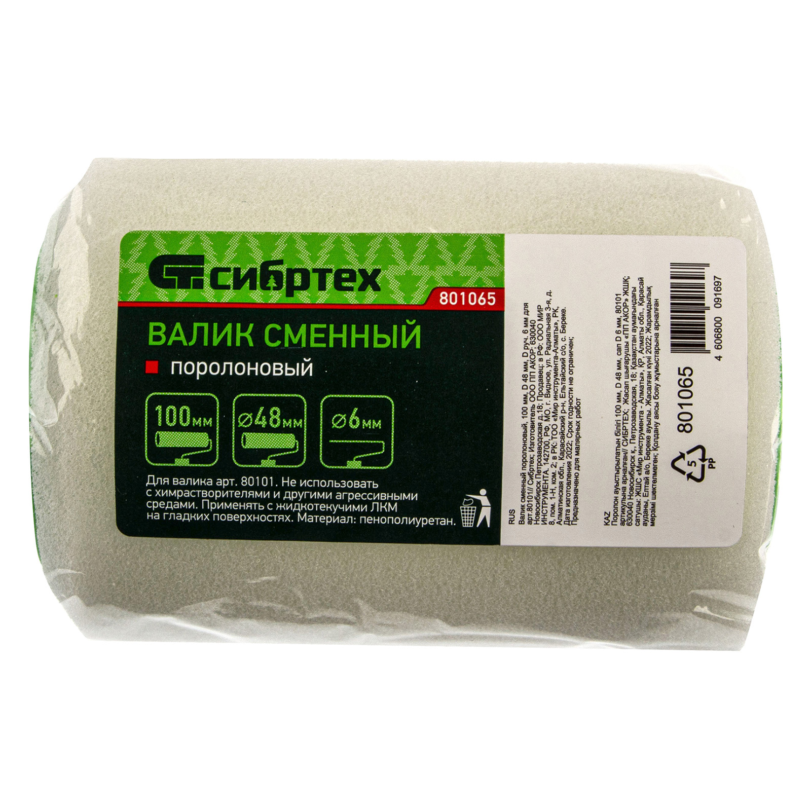 Валик сменный поролоновый, 100 мм, D 48 мм, D руч. 6 мм для арт.80101 Сибртех
