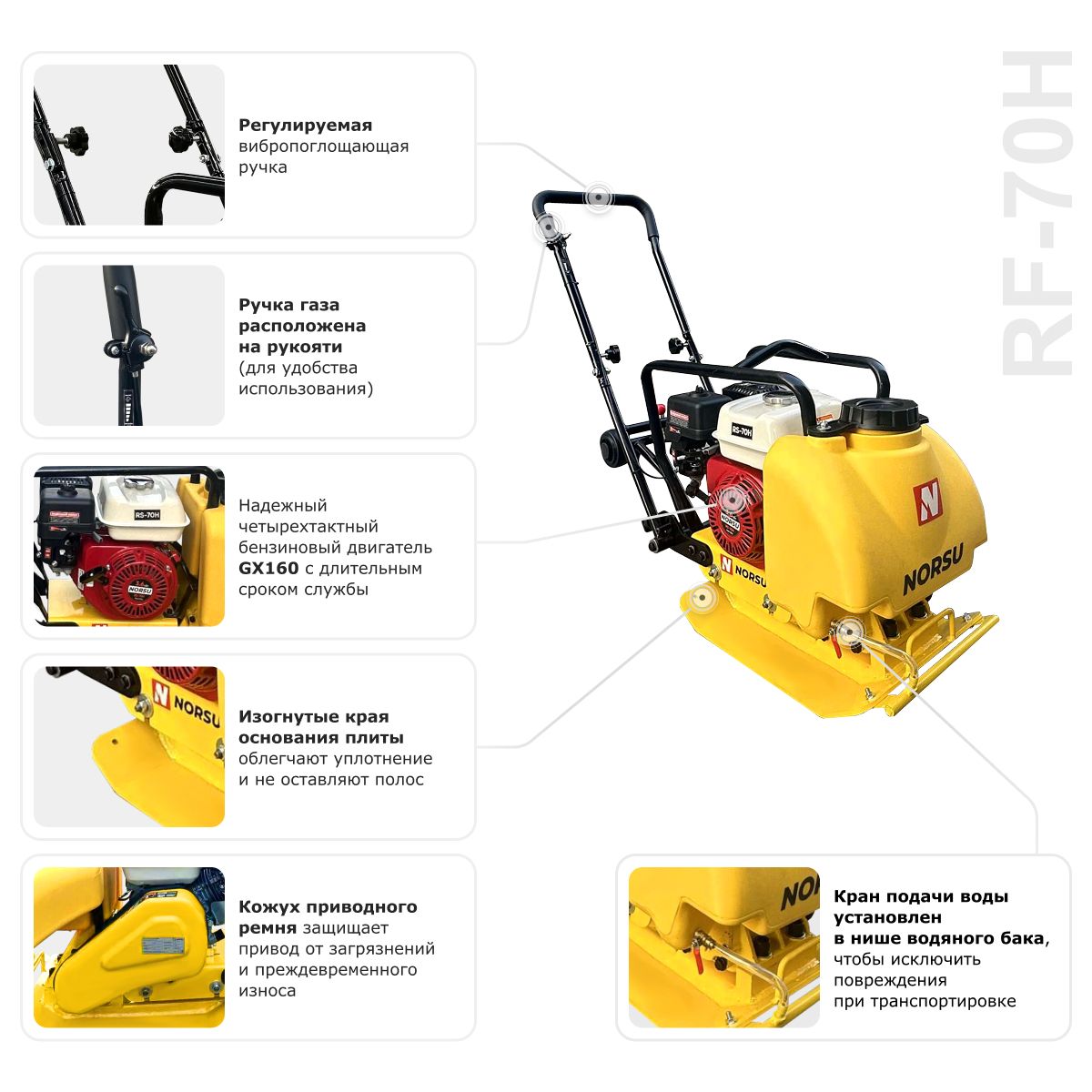 Виброплита бензиновая прямоходная NORSU RF-70TH (колесный комплект, бак для воды)