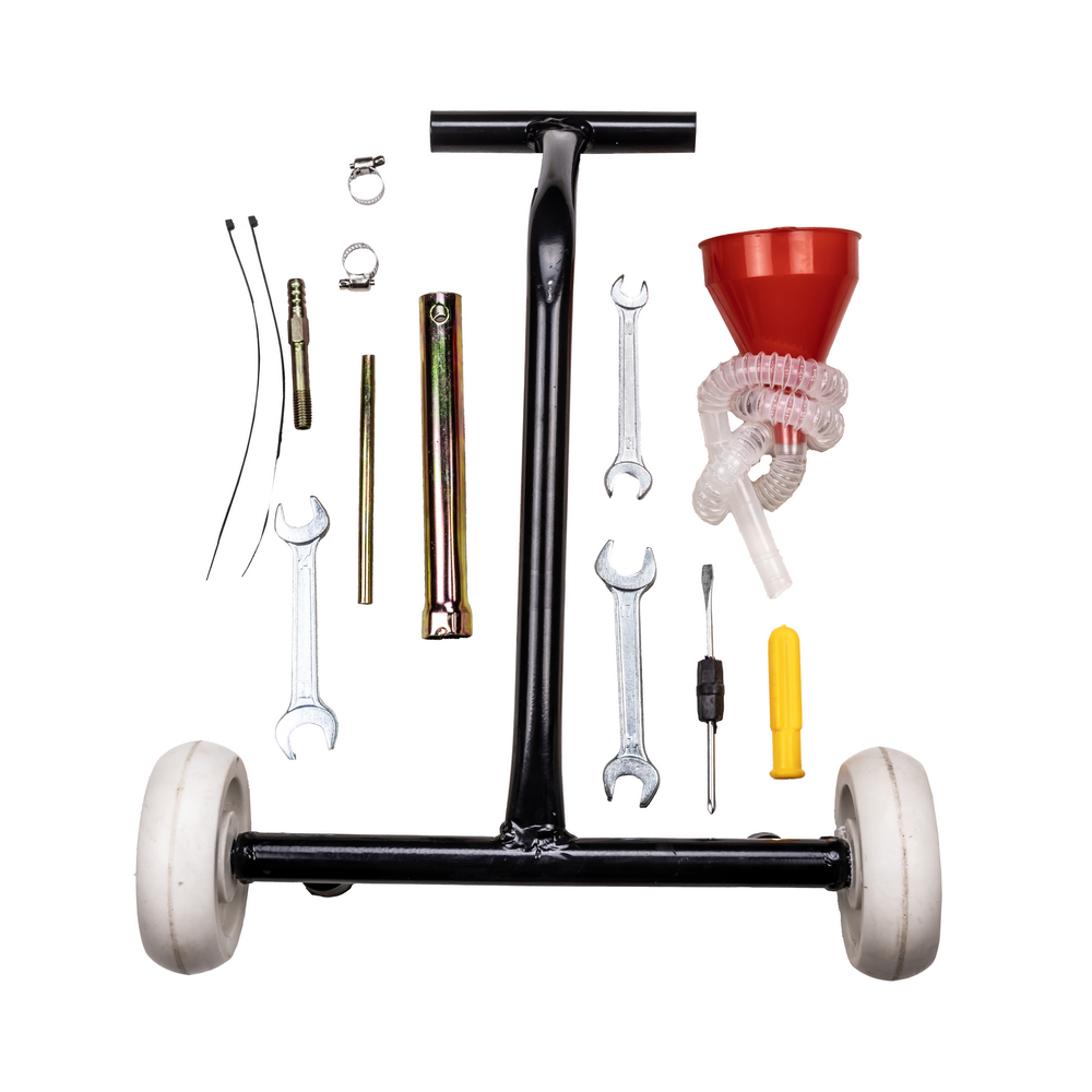 С помощью комплектной подкатной тележки с колёсами устройство легко переводится в походное положение для транспортировки к месту работы, хранения или погрузки.