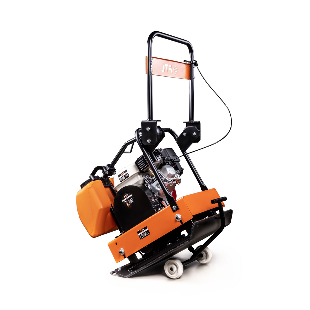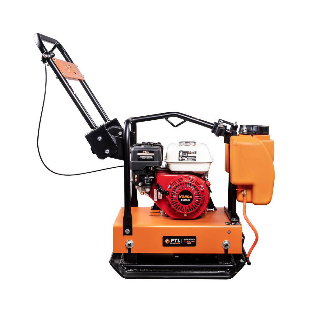Вкупе с цельносварной опорной плитой виброплита достигает рабочего веса около 100 кг и позволяет добиваться уплотнения рабочей поверхности до 400 мм.