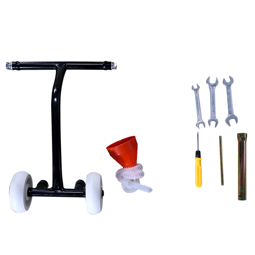 Устройство оборудовано баком для воды со встроенным разбрызгивателем ёмкостью 12 л для орошения рабочей поверхности при работе и оснащено специальным кронштейном, блокирующим слетание бака с его крепления во время работы.