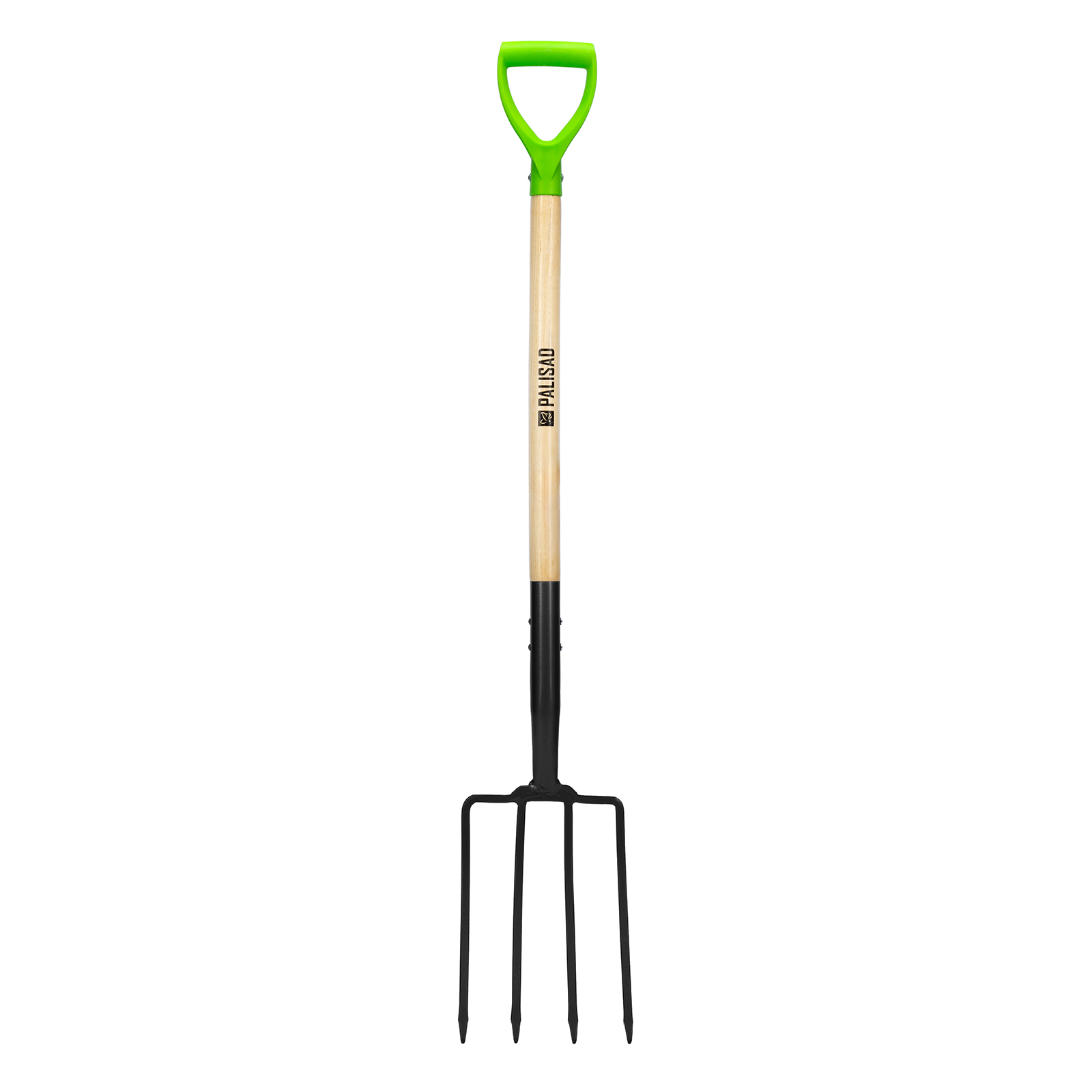 4-рогие огородные вилы Palisad 61394 размером 195 x 295 x 1165 мм, с кованой рабочей частью и деревянным лакированным черенком, предназначены для вскапывания и рыхления почвы, аэрации грунта, а также для выкапывания корнеплодов. Незаменимы для выполнения сельскохозяйственных работ на приусадебном участке.