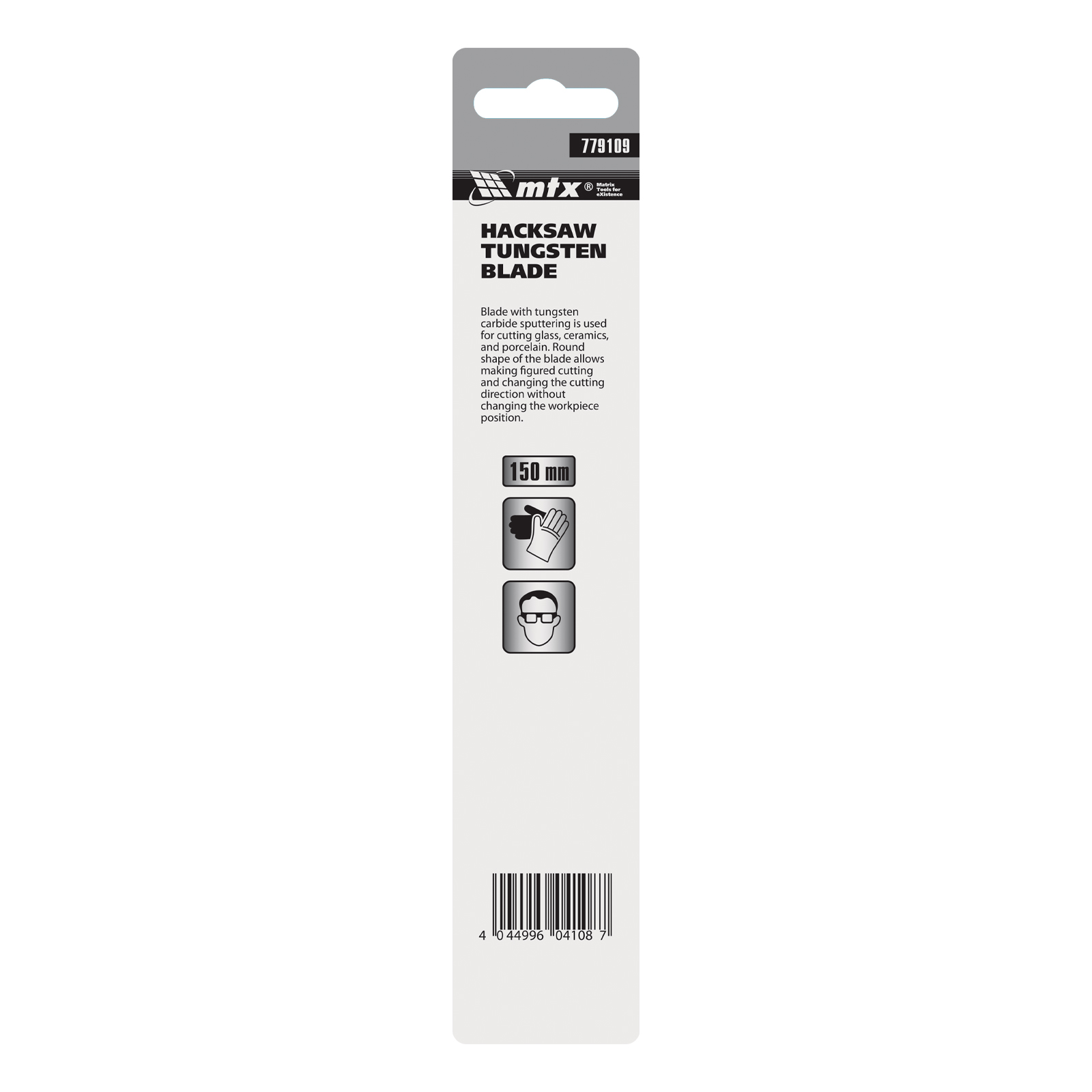 Вольфрамовое полотно MTX 779109 длиной 150 мм используется в качестве сменного элемента для ручных ножовок соответствующего размера. Оно пригодится для распила стекла, керамики и фарфора. Полотно будет полезно при осуществлении ремонта в квартире или загородном доме.