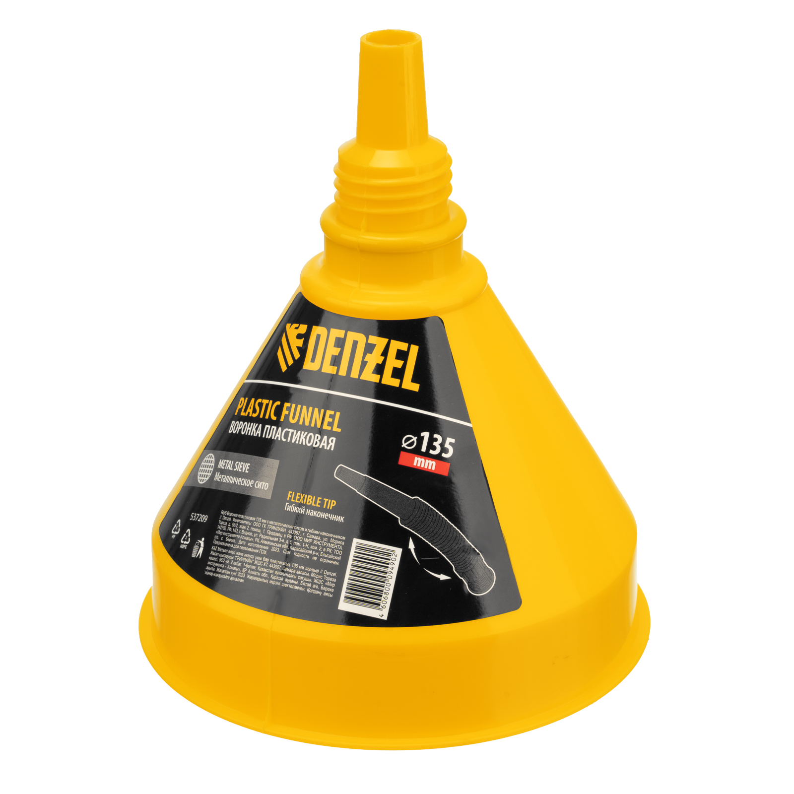 Воронка пластиковая 135 мм с металлическим ситом и гибким наконечником Denzel