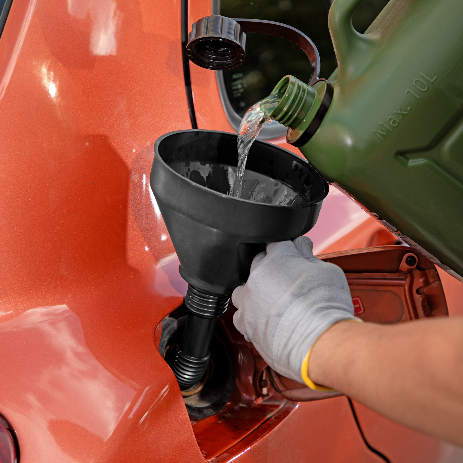 Пластмассовая воронка Sparta 537205 диаметром 160 мм, с гибким наконечником, используется для переливания горюче-смазочных материалов. Она пригодится автомобилистам, чтобы заливать бензин, антифриз и другие жидкости. С помощью воронки это можно сделать максимально быстро и не испачкавшись.
