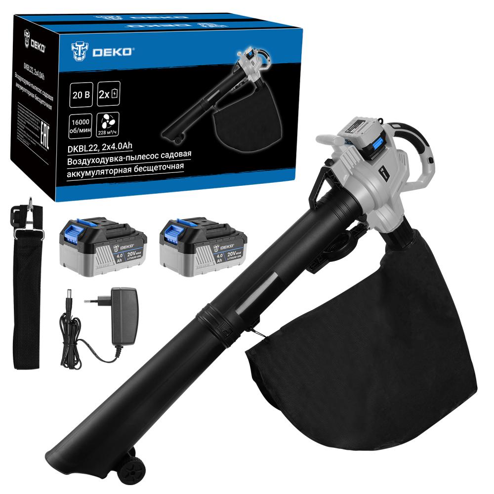 Воздуходувка-пылесос садовая аккумуляторная бесщеточная DEKO DKBL22, 20В, 2x4.0Ач