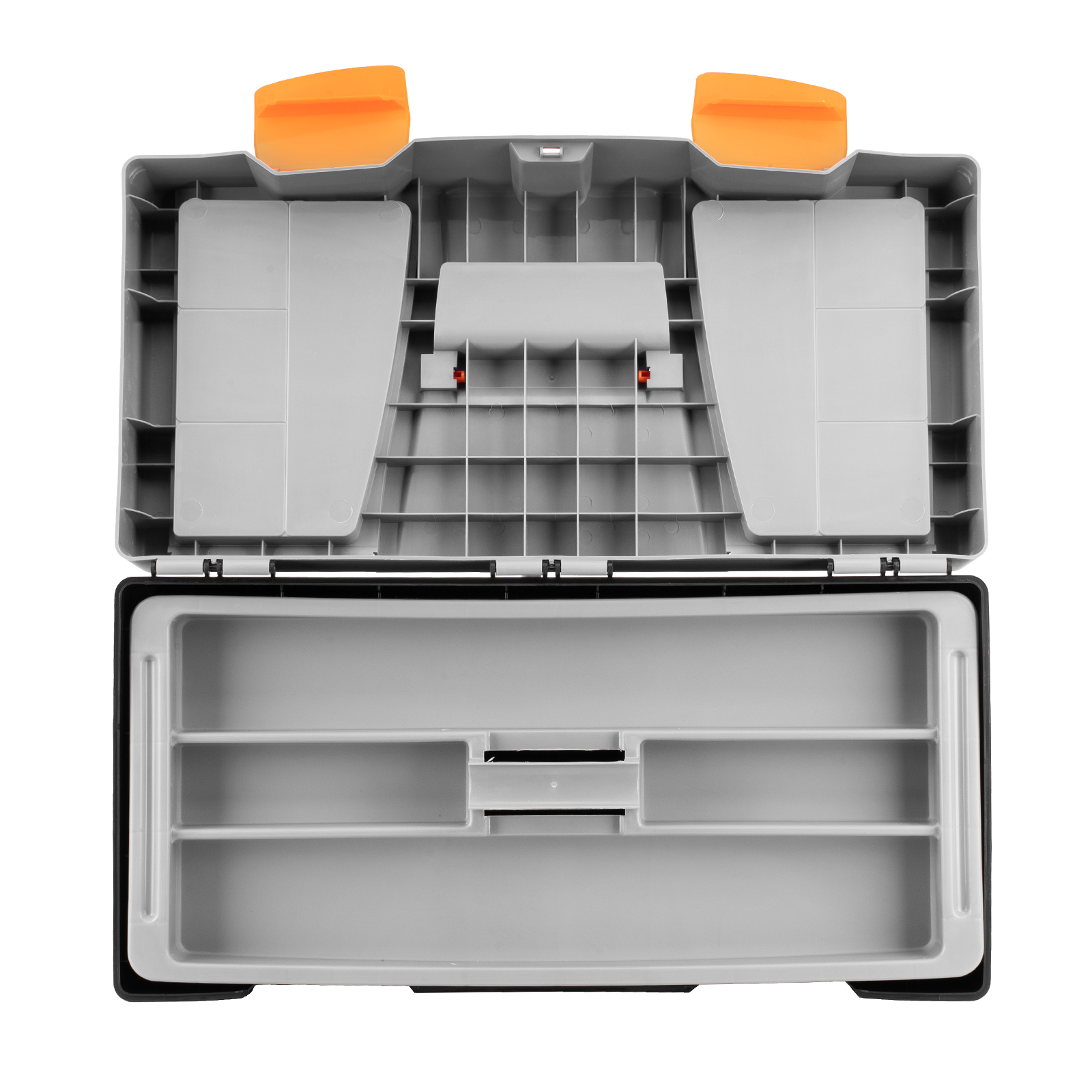- В ящике имеется съемный лоток, что позволяет удобно расположить инструменты разного размера, а также крепежи и мелкие детали.