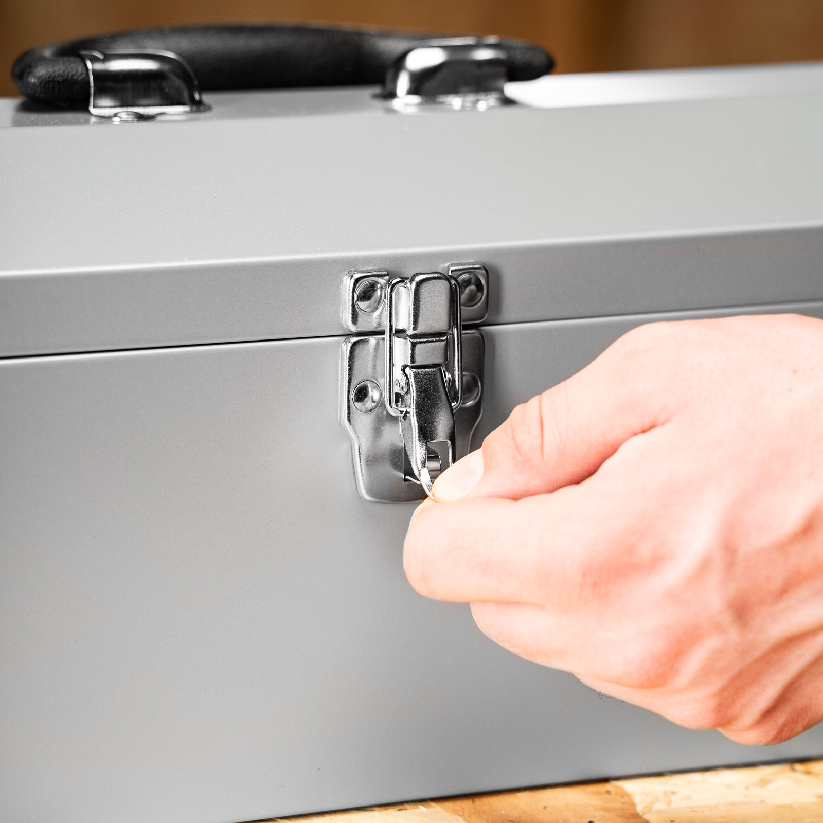 - Крепкий замок — находящиеся в ящике предметы не рассыпятся во время хранения или транспортировки.