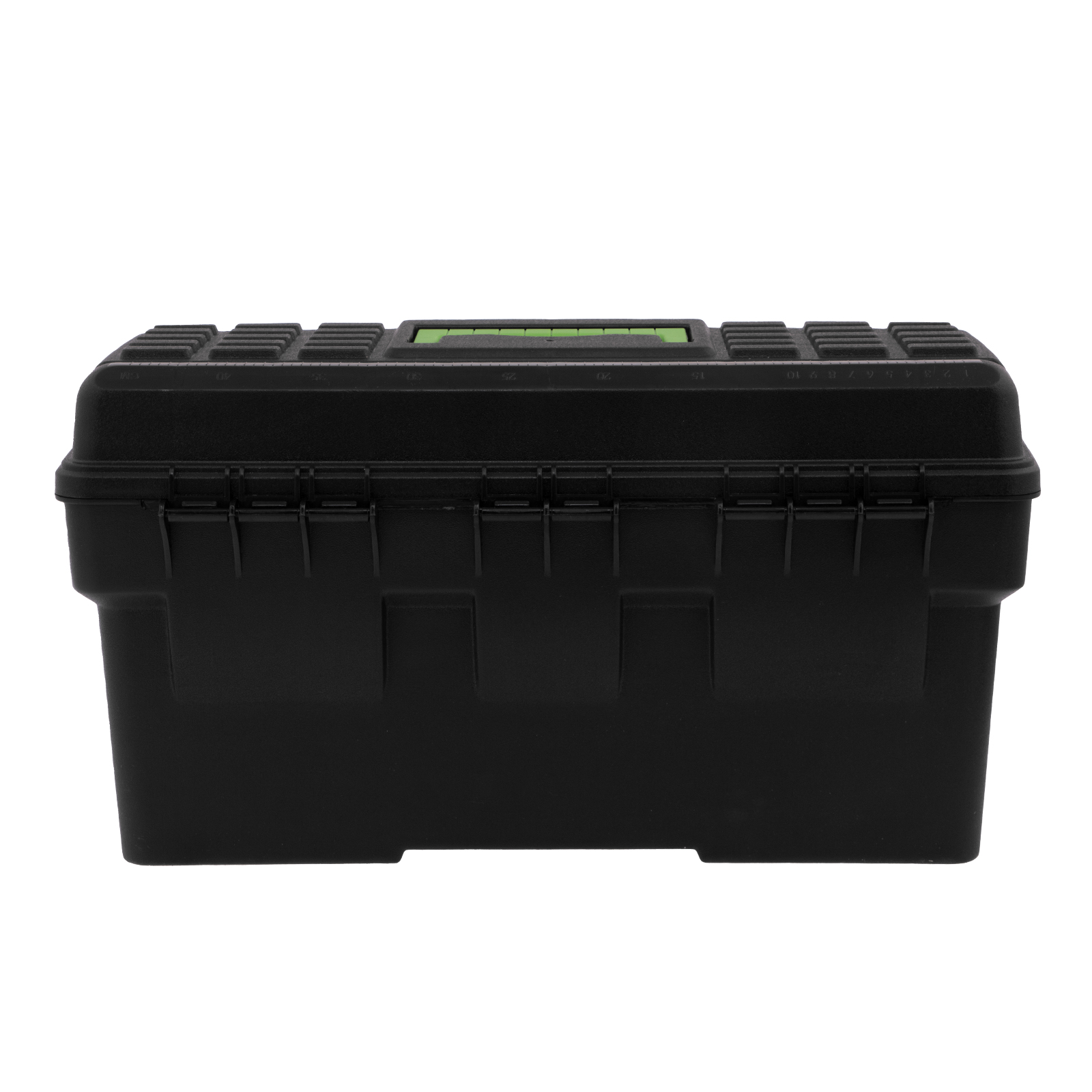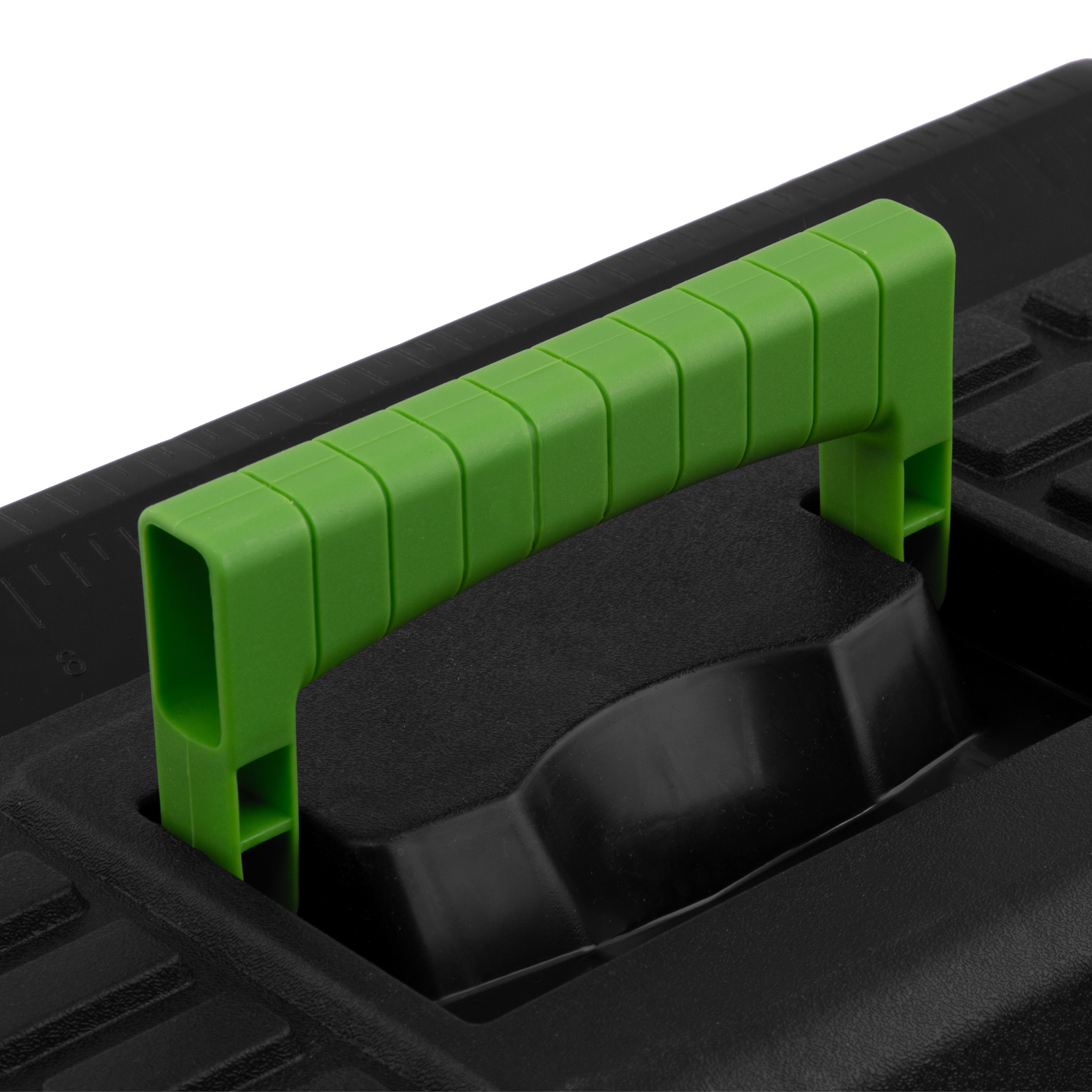 Ящик для инструмента Сибртех 90806 из пластика, 21 дюйм, 530 х 275 х 290 мм, — удобное вместилище для инструментов, бытовых мелочей, рыболовных снастей. На крышку нанесена измерительная шкала в сантиметрах и дюймах, поэтому можно проводить измерения, даже если под рукой нет линейки. Ящик пригодится в поездке, на рыбалке, а также дома, на даче или в гараже.