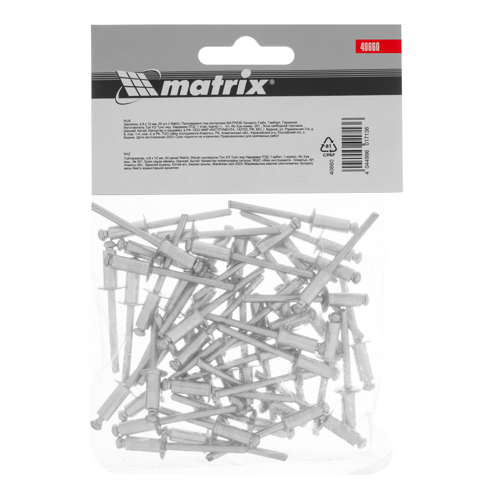 Заклепки, 4.8 х 12 мм, 50 шт. Matrix