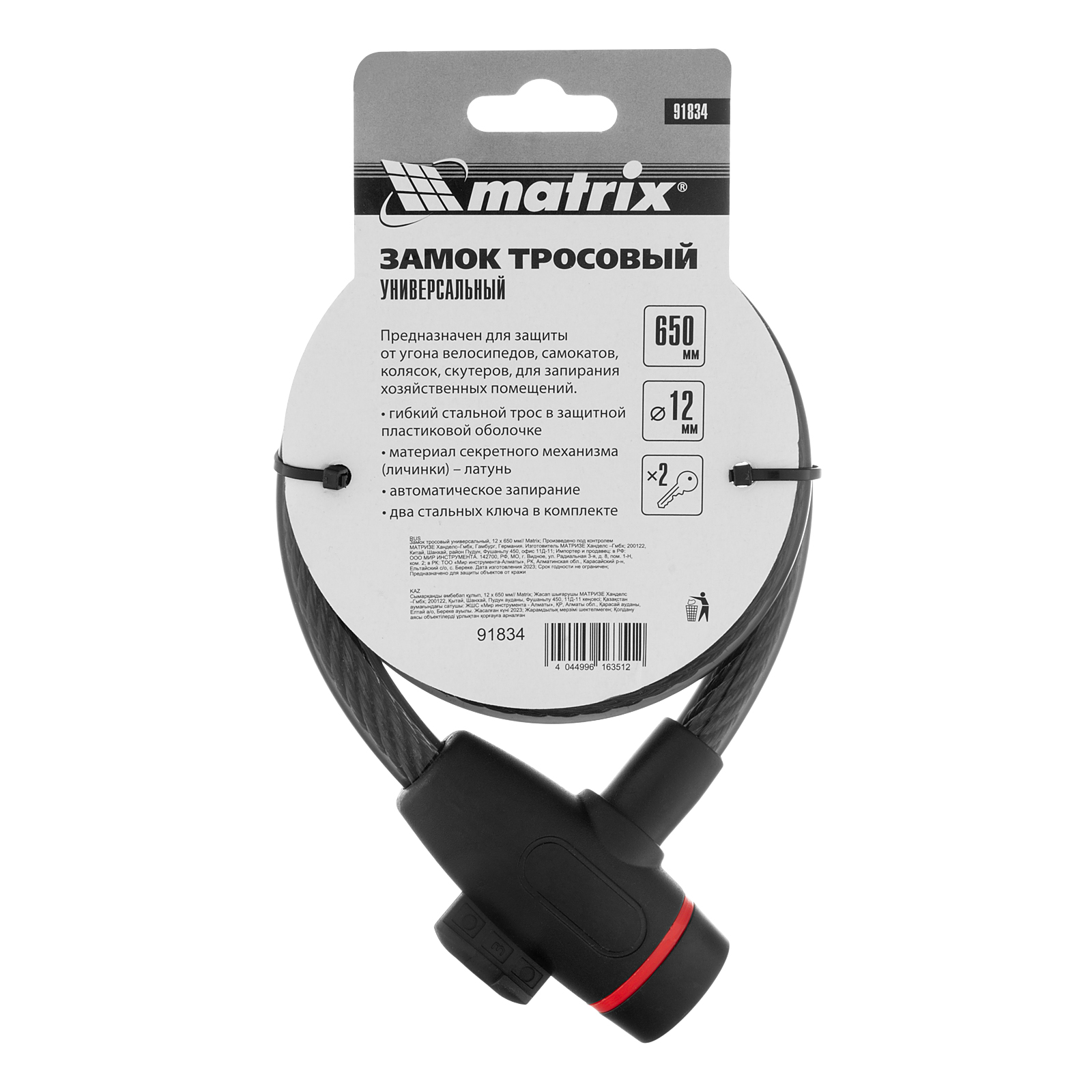 Замок тросовый универсальный, 12 х 650 мм Matrix |