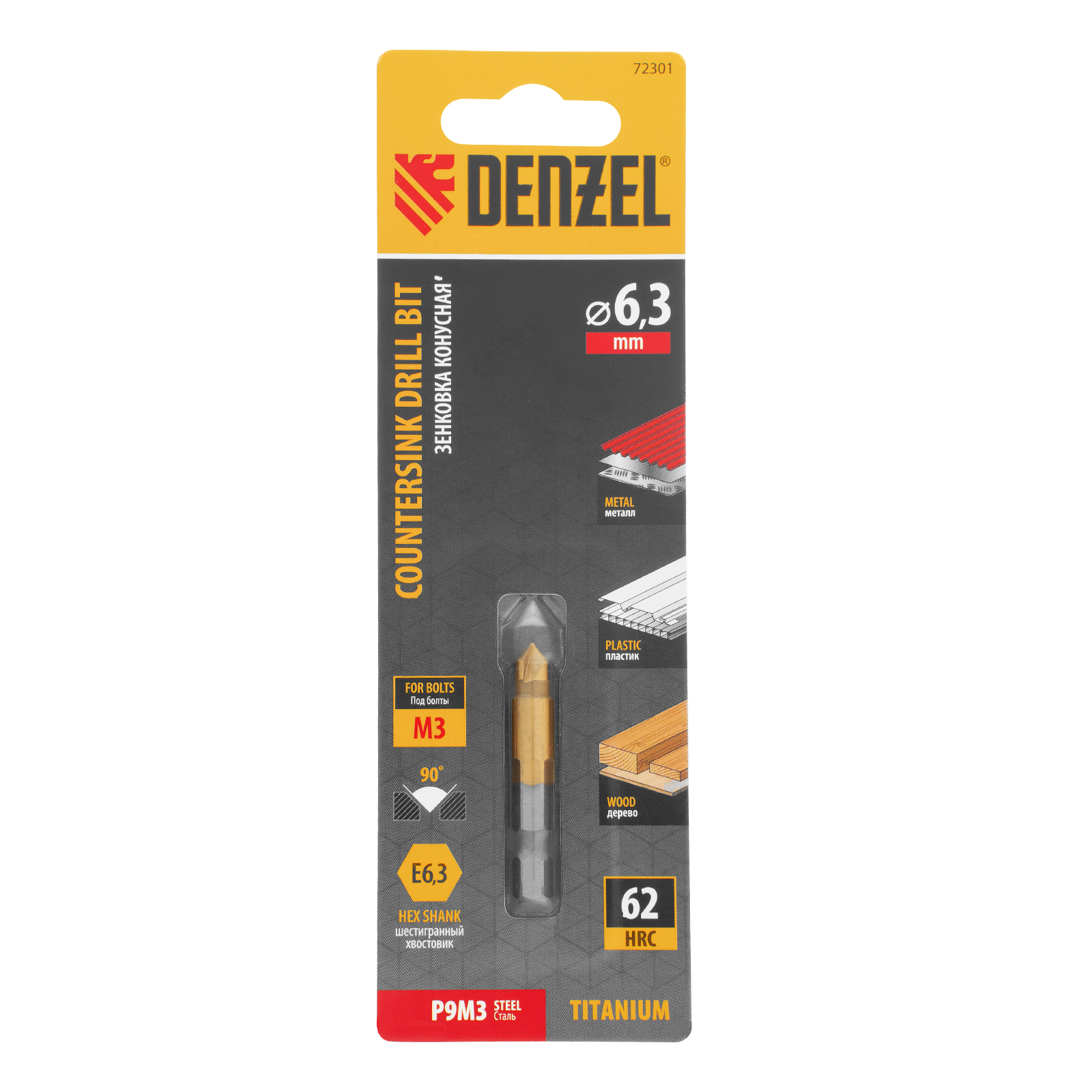 Зенковка конусная под М3, HSS, по металлу, 6-гранный хвостовик Denzel