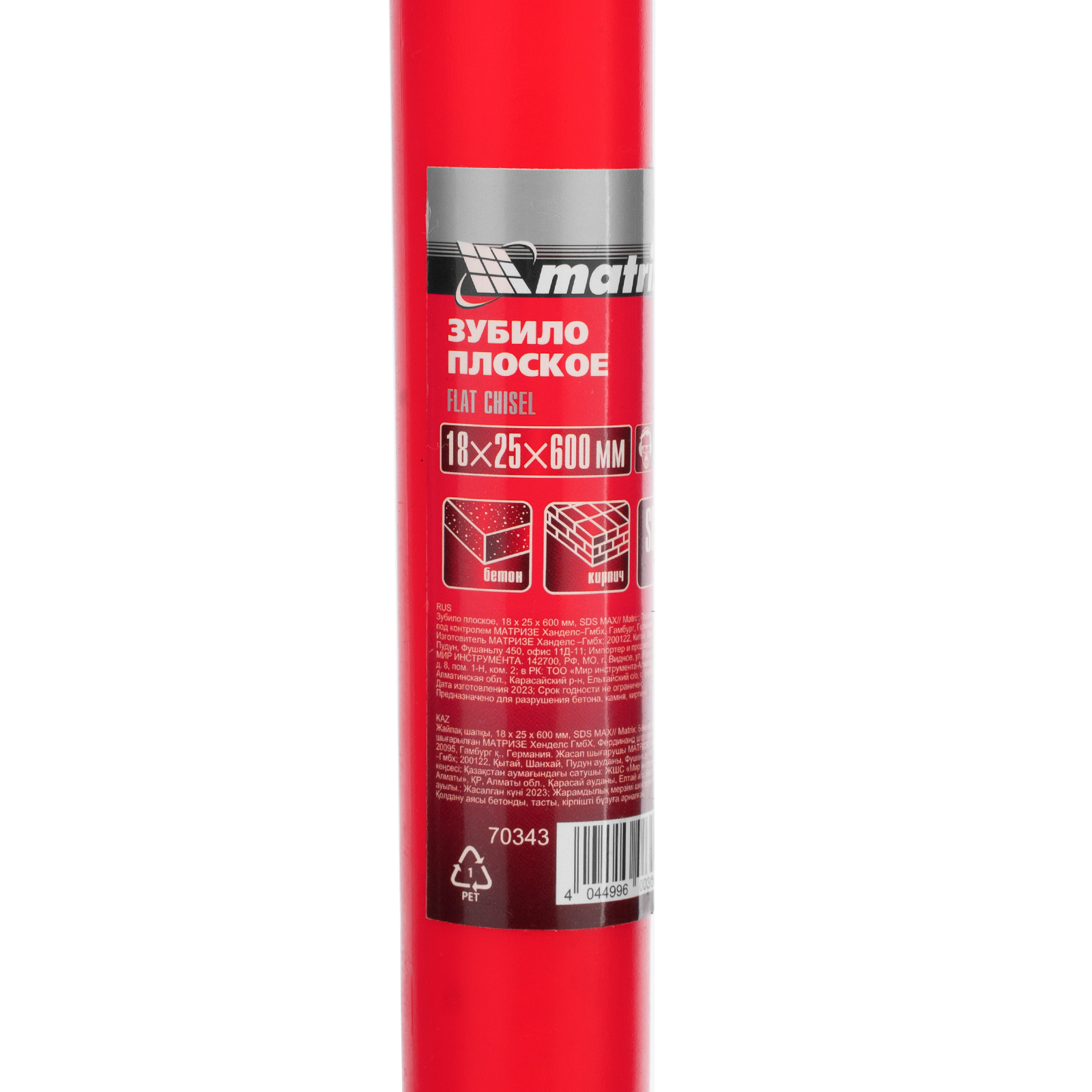 Плоское зубило Matrix 70343 размером 18 х 25 х 600 мм устанавливается на перфоратор, совместимый с хвостовиком SDS MAX. Инструмент универсальной плоской формы упрощает демонтаж старой отделки, раскалывание кирпичных конструкций, штробление бетона и выполнение других работ.